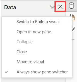 В нем есть список разных действий, но нам нужны только Раскрыть панель в новой вкладке и Свернуть, когда мы закончили с ней работу. Действие Закрыть, также, как и крестик, во всех панелях приведет к их удалению из активного списка, а Перейти к визуальному элементу удалит панель визуализации (настроить ее отображение обратно можно только на вкладке Вид через выпадающее меню). Поэтому, будьте внимательны.