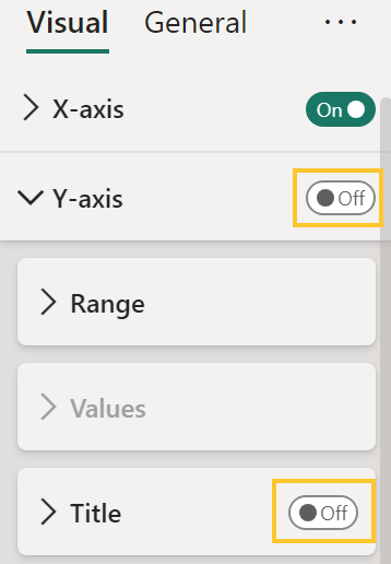 2. Отключить ось значений (Y для столбчатой и X для линейчатой).