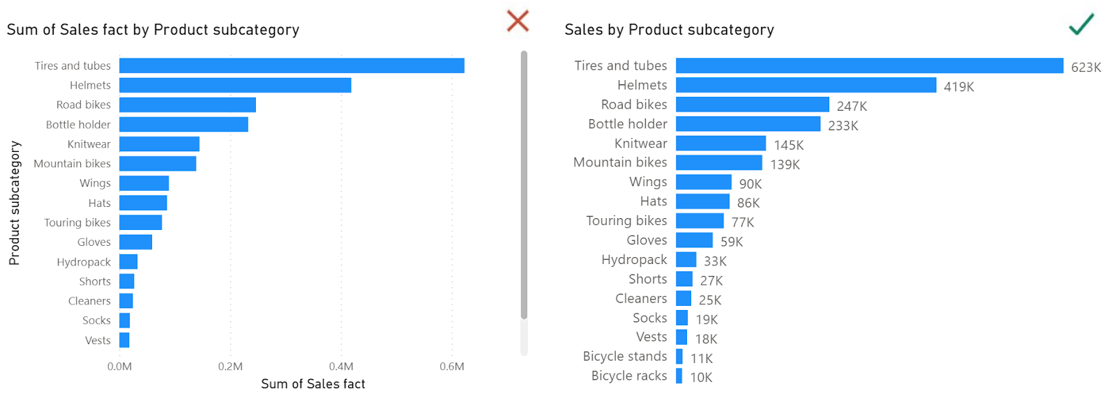 Отчет в Power BI отличается от слайдов презентации интерактивностью – данные обновляются, а количество категорий и диапазон значений изменяются в зависимости от применяемых фильтров. Поэтому, дважды проверьте, правильно ли отображаются данные и метки категорий при различных вариантах фильтрации.