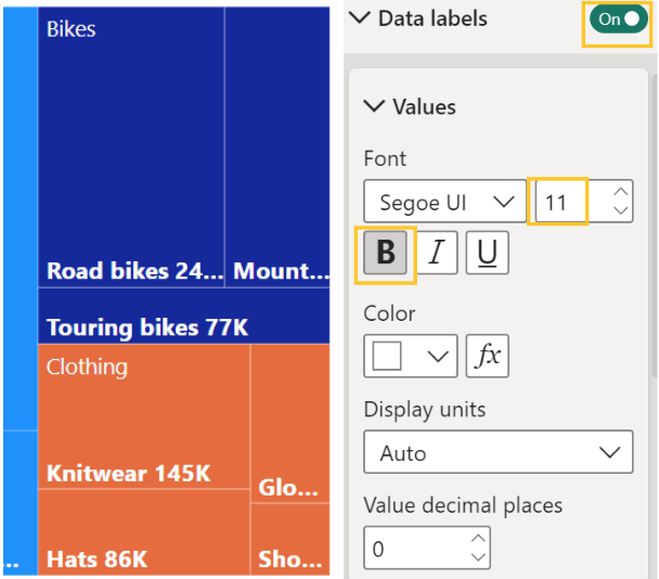 Несмотря на эти преимущества, мы ожидали, что тримап будет более зрелой, усовершенствованной визуализацией (ведь в Excel он тоже есть и разработчики могли бы развить его дальше). Что касается меток данных, то мы надеялись увидеть больше возможностей для тонкой настройки. Сейчас очевидными ограничениями являются: