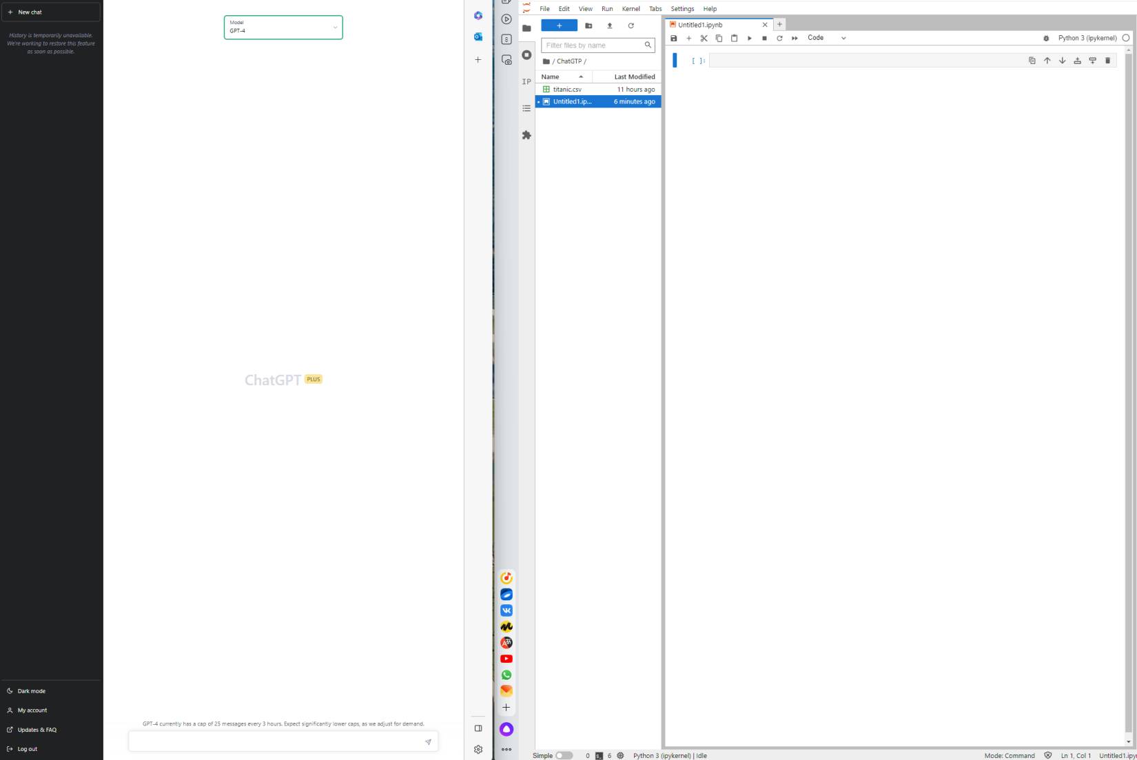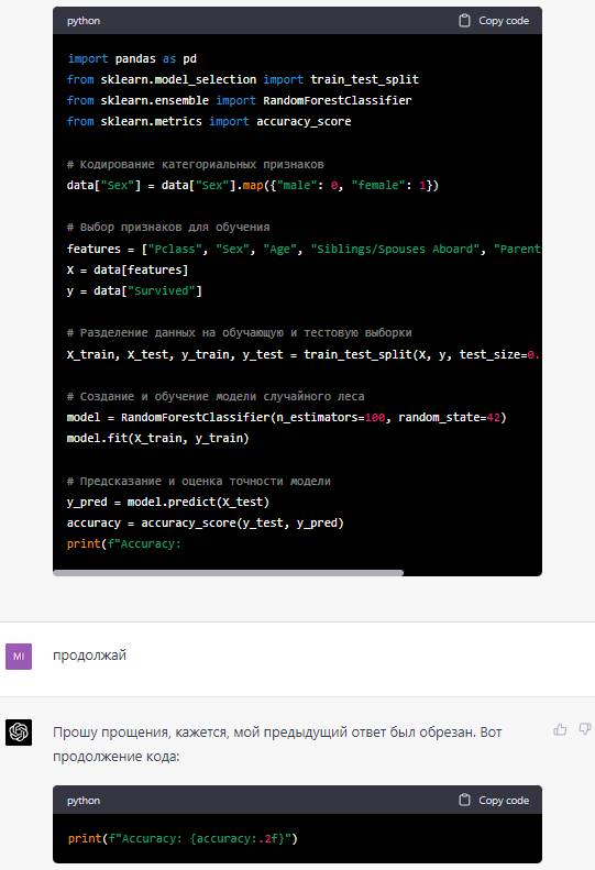 Одним из примеров, которые мы рассмотрим, будет модель, содержащая данные пассажиров Титаника. Используя свои собственные данные, вы сможете предсказать вероятность выживания на корабле благодаря тому, что мы покажем вам, как использовать ChatGPT для обучения модели машинного обучения.