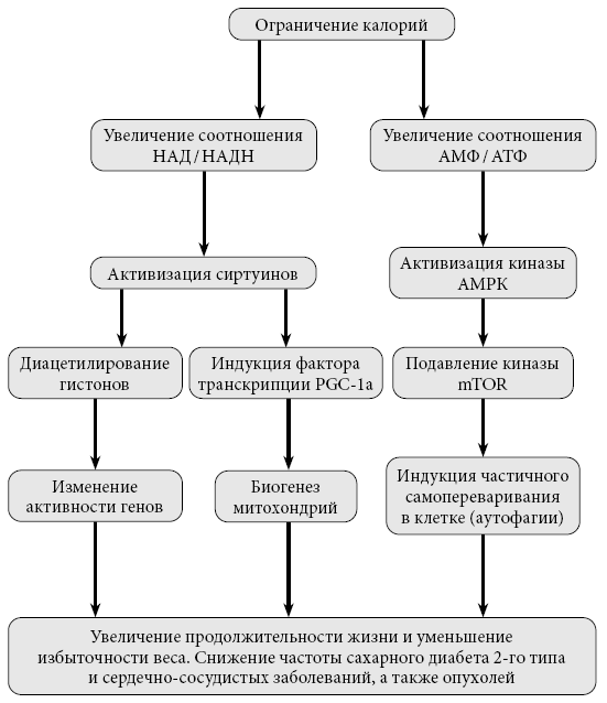 Рис. 2. Механизмы влияния ограничительной диеты на здоровье и долголетие