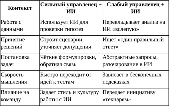 Ответ пришёл через минуту. И я понял: дело не в ИИ. Дело в качестве управленческого мышления. ИИ просто начал требовать от нас того, что давно нужно было развить: ясность, приоритет, работа с неопределённостью.