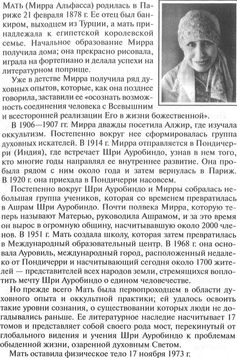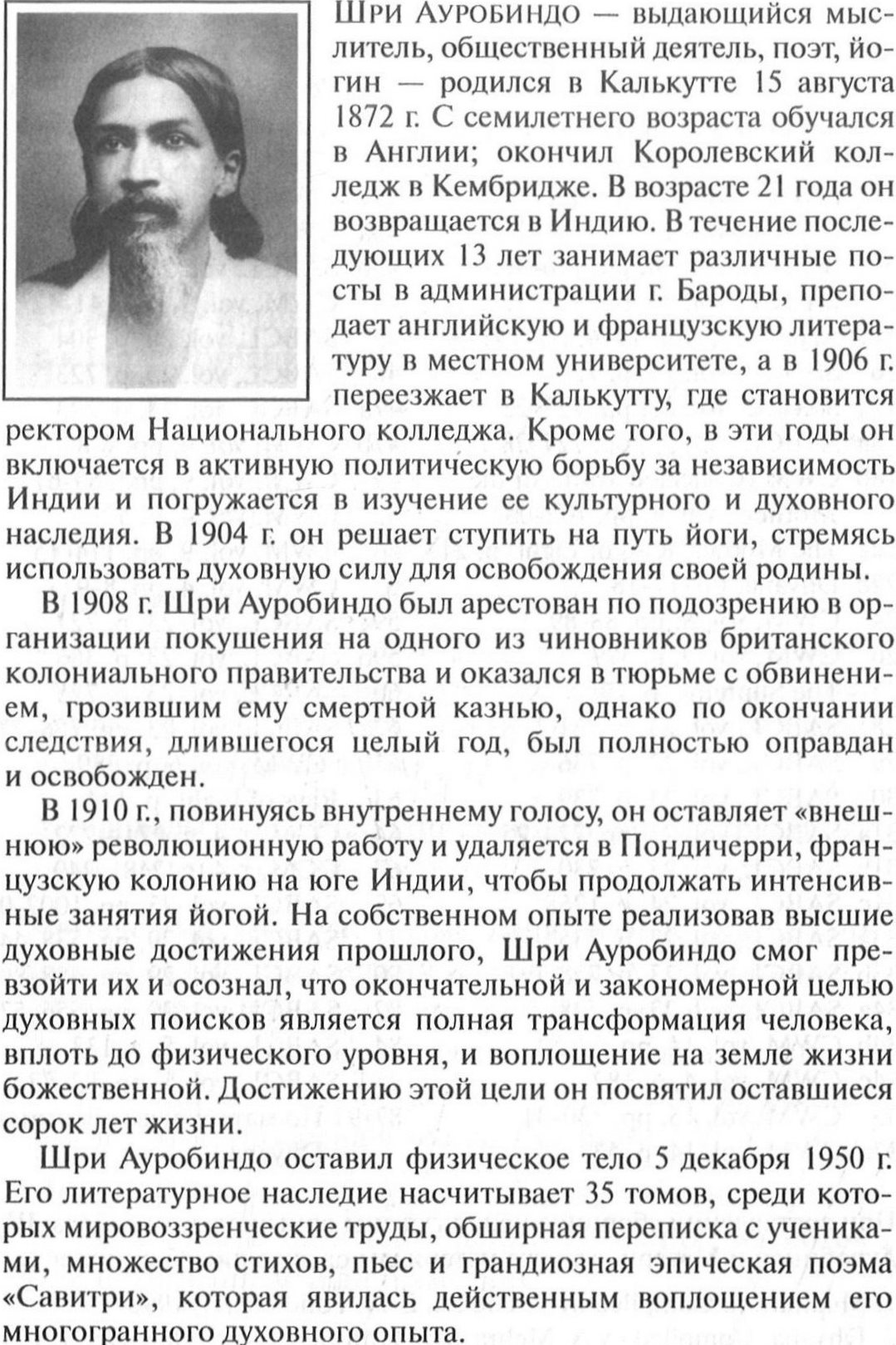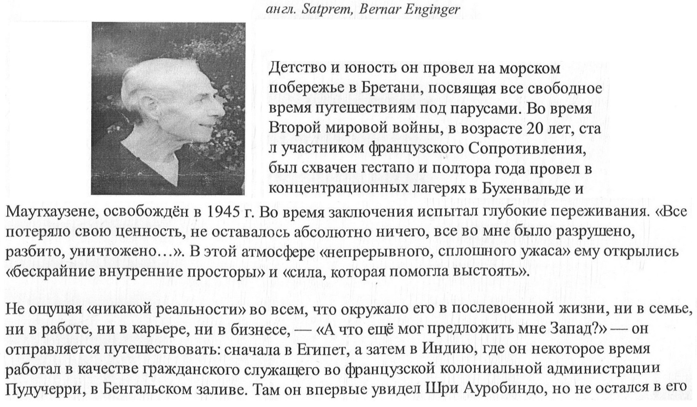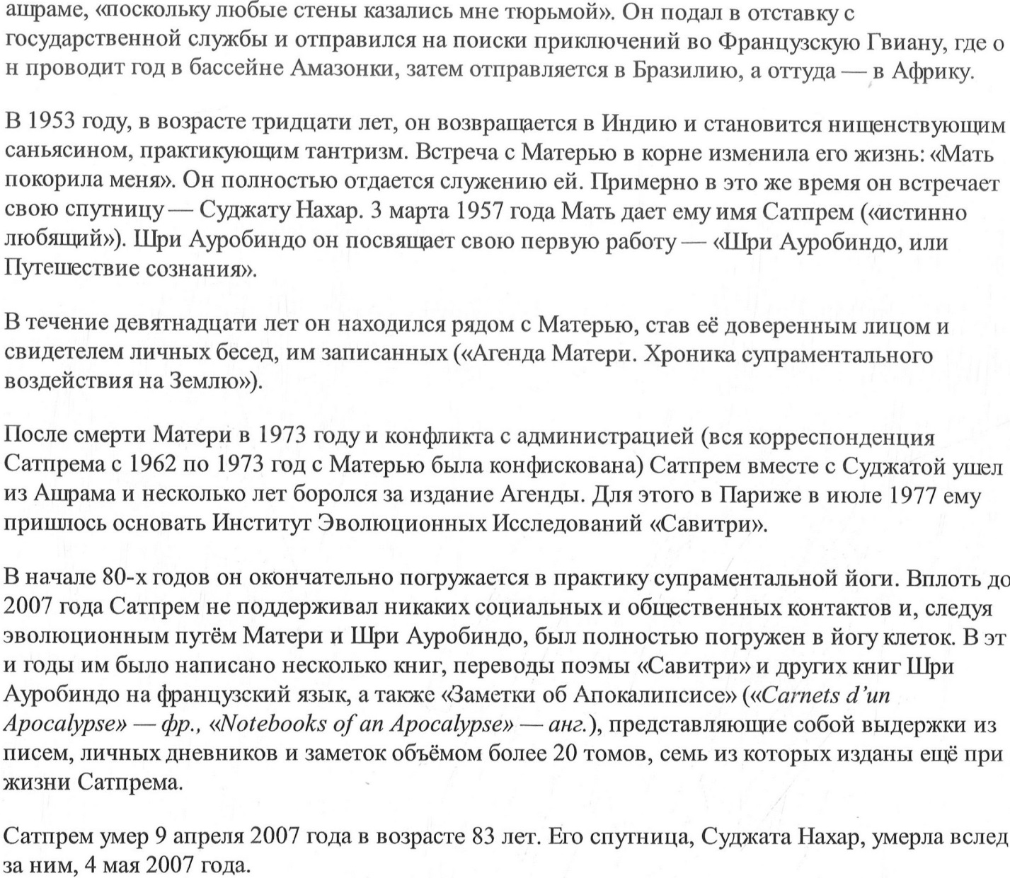 Во-первых, в ней приводятся наиболее значимые, по мнению автора, отрывки из произведений Ш. Ауробиндо, Матери (Мирры Альфасы) и Сатпрема и его работы «Шри Ауробиндо или путешествие сознания».
