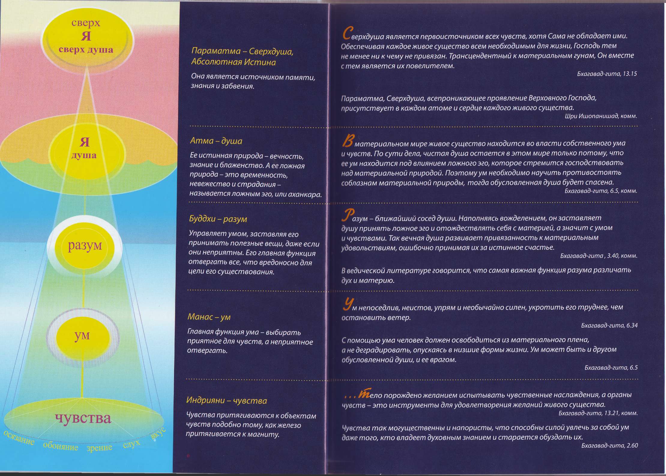 Разум – ближайший сосед души. Наполняясь вожделением, он заставляет душу принять ложное эго и отождествлять себя с материей, а значит, с умом и чувствами. Так вечная душа развивает привязанность к материальным удовольствиям, ошибочно принимая их за истинное счастье.