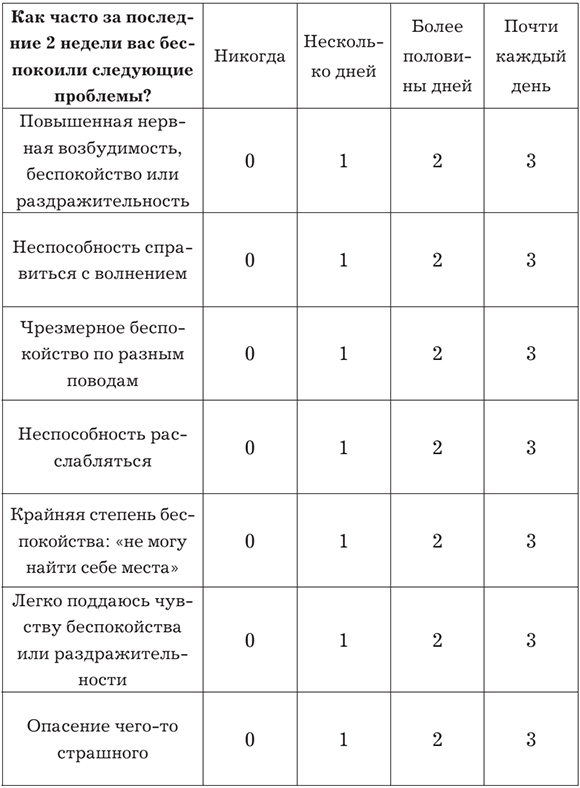 Когда к воркбуку нужно что-то добавитьВсе любят тесты – они позволяют быстро провести диагностику. Один из самых полезных и понятных тестов при работе с тревогой называется «Опросник генерализованного тревожного расстройства», ГТР-7 (или GAD-7, General Anxiety Disorder-7).