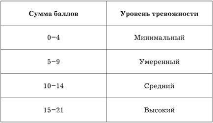 Если у вас 10–14 баллов – в первую очередь задумайтесь о том, чтобы уточнить уровень вашего беспокойства у специалиста: психолога, психотерапевта, психиатра. Даже если вы считаете, что с вами все в порядке, все равно лучше сходить на один прием и подтвердить, что ничего страшного не происходит, чем пренебречь этим. Задача здесь – предотвратить развитие потенциально угрожающих последствий: тревожного расстройства, депрессии, бессонницы, нарушений в отношениях с собой и окружающими и т. п.