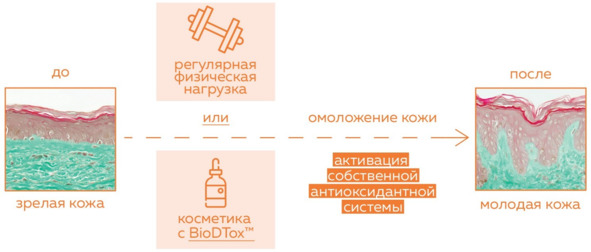 Косметика с BioDTox™ – это косметическая альтернатива пользы РЕГУЛЯРНОЙ ФИЗИЧЕСКОЙ НАГРУЗКИ.