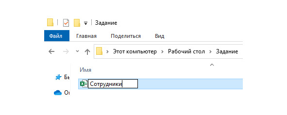 Вбиваем с клавиатуры наше наименование «Сотрудники», жмём Ввод (Enter) и получаем созданный нами файл Excel с нужным именем «Сотрудники» в папке Рабочего стола которую мы назвали «Задание».