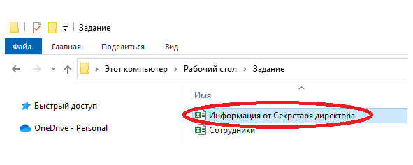 Для начала выберем на компьютере место или «Папку», где будет храниться созданный нами файл Excel, а также выберем название для них. Например, создадим на Рабочем столе папку «Задание», и в ней создадим Excel-файл c названием «Сотрудники».
