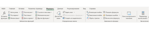 Например, на вкладке «Формулы» увидим примерно такой набор команд по умолчанию (конкретный набор зависит от версии Excel).