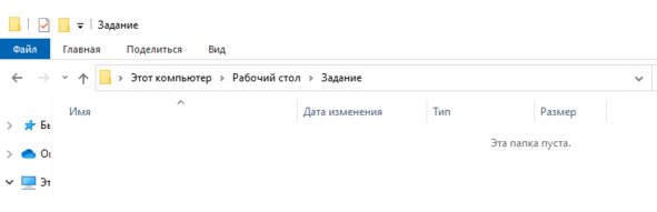 Откроется пока пустая папка «Задание» в примерно таком виде (конкретный вид будет зависеть от настроек Вашего компьютера).
