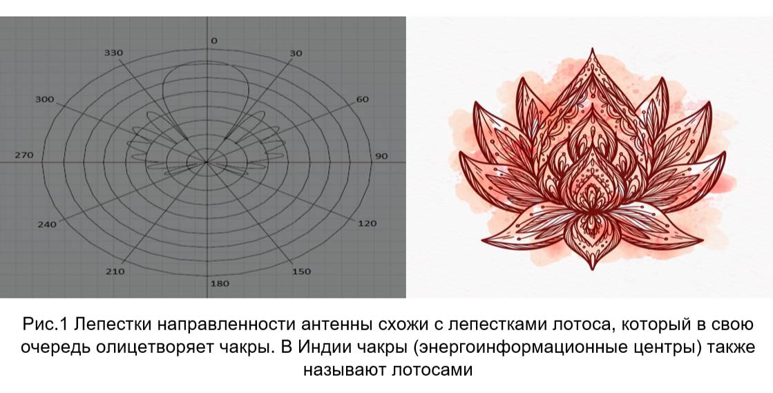 Лепестки направленности антенны (диаграмма направленности) схожи с лепестками лотоса, который в свою очередь олицетворяет чакры. В Индии чакры (энергоинформационные центры человека) нередко называют именно лотосами.