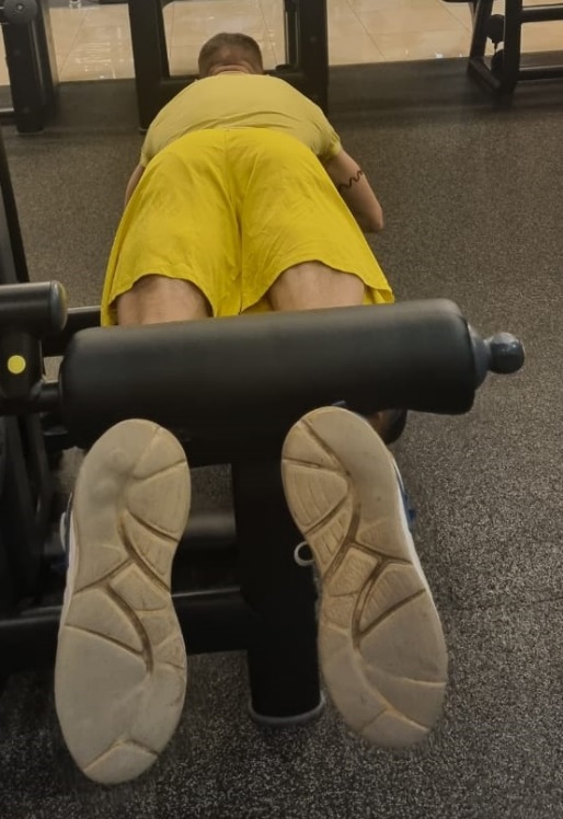 Ложитесь на тренажер. Устраивайтесь поудобнее. Выполняете сгибание ног лежа. Отличное упражнение для задней поверхности бедра. Крайне полезное упражнение.