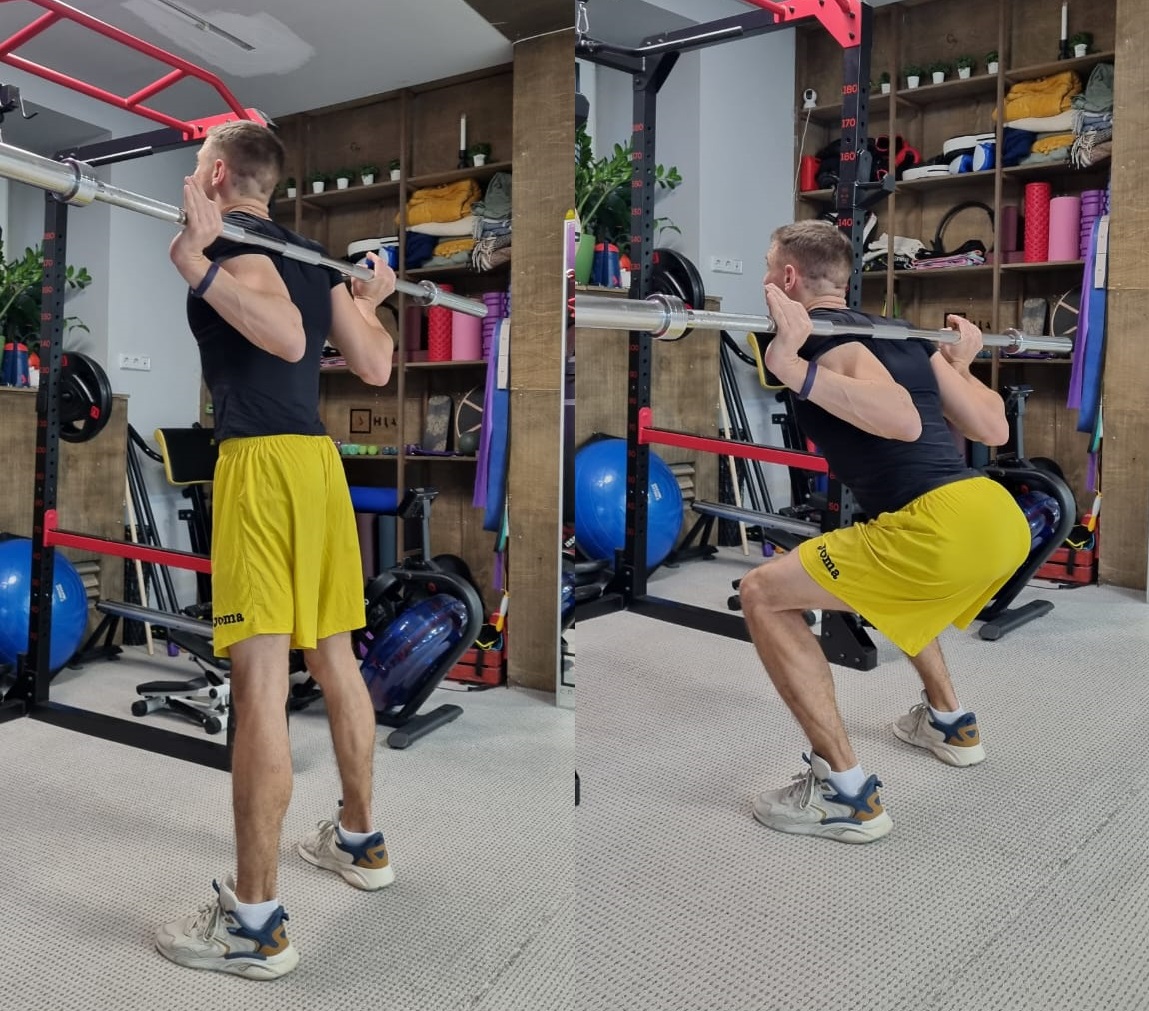 Приседания – базовое упражнение для мужчин. Присед желательно делать глубоко в пол или хотя бы до параллели с полом. А без веса приседайте обязательно прямо в пол. Будьте аккуратны с коленями. Избегайте боли и дискомфорта. Разминайте их перед занятиями.