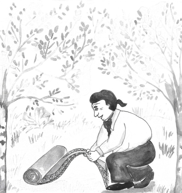 Странный мужчина стоял на дороге, в паре метров от сворачивающегося коврика, рядом с большим камнем, за который быстро юркнул Петя.