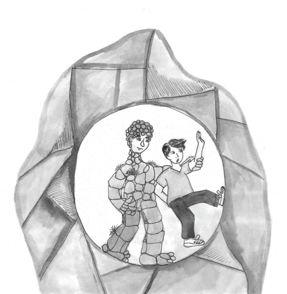 Петя резко обернулся. Перед ним стояло существо из камня ростом примерно один метр шестьдесят сантиметров. Оно всё состояло из огромного количества камней и мха.