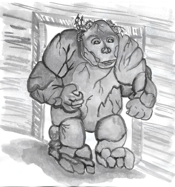 В комнату вошла глыба, огромная скала. На крупном полированном черепе росли маленькие клочки пожухлого мха. Всё тело было слеплено из крупных угловатых камней. Даже шаман рядом с ним казался хрупким мальчиком, хотя он был большим каменным человеком.