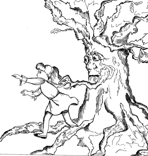 – Больно-то как… – прошептала Аня, потирая место ушиба. Девочка посмотрела в сторону окна, и увиденное её не обрадовало. Окно было затянуто решёткой из веток, и солнце клонилось к закату. «В той записке что-то говорилось про время, но что?» Аня попыталась вспомнить, но у неё ничего не получалось. Выглянув из-за двери, она чуть не напоролась на ветки, что тянулись к ней. От испуга девочка запрыгнула внутрь дуба и закрыла за собой дверь. Внутри было прохладно, и от стен шло бледное сияние. Перед ней была лестница, уходящая куда-то вниз. Аня обернулась к двери, но двери НЕ БЫЛО. На её месте была неровная древесина без всяких признаков дверного проёма…