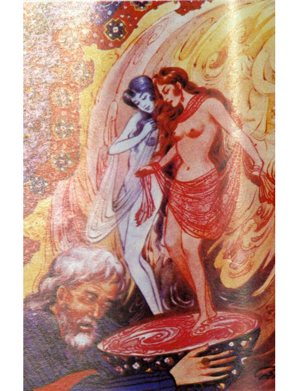 Среди гурий прекрасных я пьян и влюбленИ вину отдаю благодарный поклон.От оков бытия я сегодня свободенИ блажен, словно в высший чертог приглашен.Моя жемчужина!Успей, пока в цене,Себя порадовать и стать отрадой мне.Так быстро дни пройдут, придут такие ночи,Когда не свидеться нам даже и во сне.Кто урод, кто красавец – не ведает страсть.В ад согласен безумец влюбленный попасть.Безразлично влюбленным, во что одеваться,Что на землю стелить, что под голову класть.Потому, его строки всегда вдохновляли и поэтов и художников.