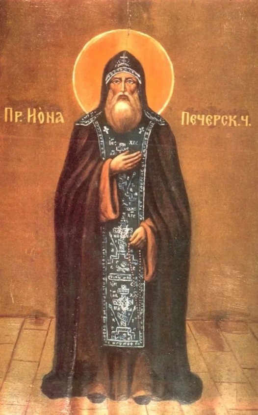 Дату смерти Ионы официальные источники Псково-Печерского монастыря определяют 1480 годом. Именно этот год стал началом очередного военного конфликта с Орденом (1480—1482). Была ли в этом какая-то взаимосвязь, неизвестно. Кольчатый панцирь, который Иона не снимал более десяти лет, повесили над его гробом в пещере, но позже он был похищен.
