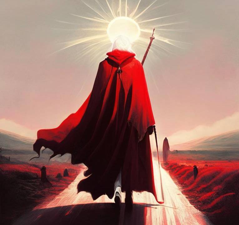 Одет был незнакомец неброско: ботинки, довольно поношенные и разбитые от долгой ходьбы, штаны-шаровары, холщовая рубаха, тоже уже довольно затасканная, да белый плат, повязанный на голову на манер пиратских косынок. За плечом незнакомец нёс вещевой мешок, хоть и объёмный, но явно лёгкий. Но встревожило стражей не это, а широкий военный ремень, да меч-полуторник, висящий у парня на поясе. Сам юноша был среднего роста, но жилистый, крепкий. Безусый и белобрысый. С тренированными руками и широкими плечами. Когда незнакомец подошёл ещё ближе, стражи заметили на его вещмешке странного зверька, на хорька похожего, но покрупнее чуть. Чёрный, с отливом, он резко контрастировал с белобрысой, выгоревшей шевелюрой парня, выбивающейся из под косынки. Стражи вначале животное приняли за шкурку, но хорёк время от времени лениво поднимал остроносую мордочку и выглядывал из-за плеча парня, вертя головой в разные стороны.