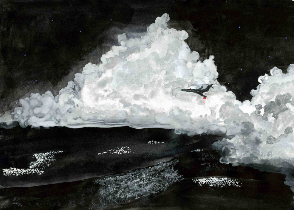 “Солнце уже зашло, и жёлтая лампа аварийного остатка топлива нудно и ярко светила мне в глаз. Кроме того, дверь в кабину открылась и вошла стюардесса с сообщением и не очень свежим воздухом из салона, что у пассажиров кончились гигиенические пакеты. ”Скажите им, что экипажу самому не хватает…”