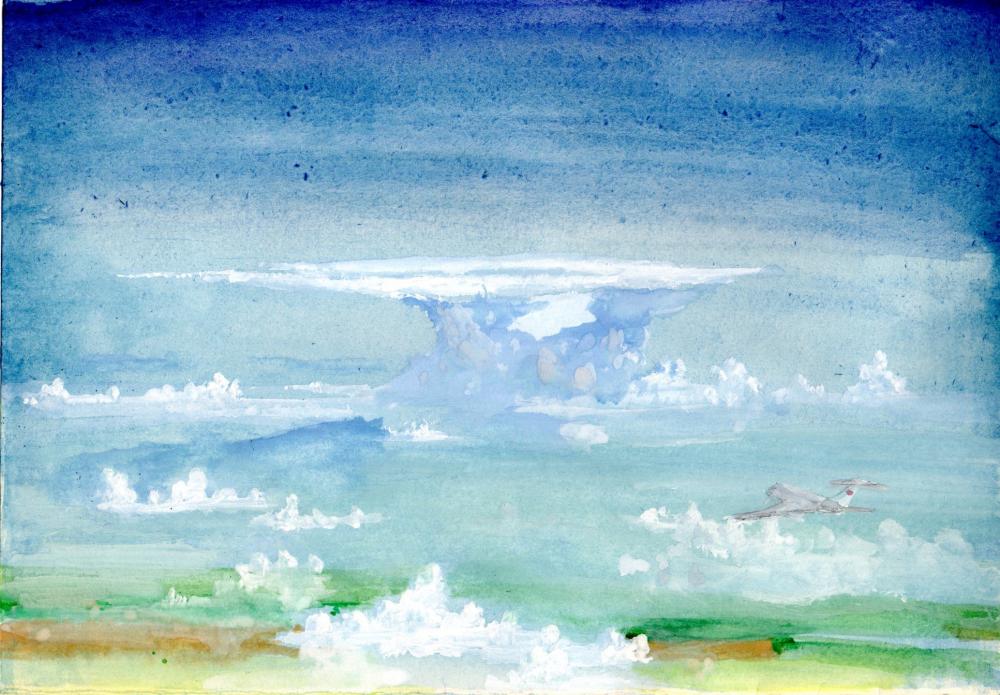 …От взлёта до того, как, я смог увидеть первую дырку прошло около 8 минут. 8 минут болтанки, стены воды и адреналина. Мы летели, как на Ан-2 – где сверкнёт туда и мы, а потом, найдя дырку в этой грозовой облачности, мы устремились ввысь.