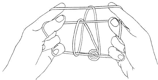 Показанная выше фигура известна и в Папуа-Новой Гвинее, но там она означает «дом». А молодую луну там делают иначе – причём иногда эту фигуру показывают перевёрнутой, изображая старую луну [8]: