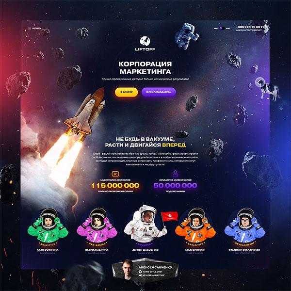 И сейчас в данный момент мы с командой сделали уже более 300 лендингов по различным тематикам. Всю часть по дизайну до сих пор делаю сам. В некоторых проектах часть работы по текстам и проработке структуры я также делаю сам, потому что мне это нравится. Остальные этапы – это верстка, программирование, настройка рекламы – это все я отдаю ребятам из моей команды.