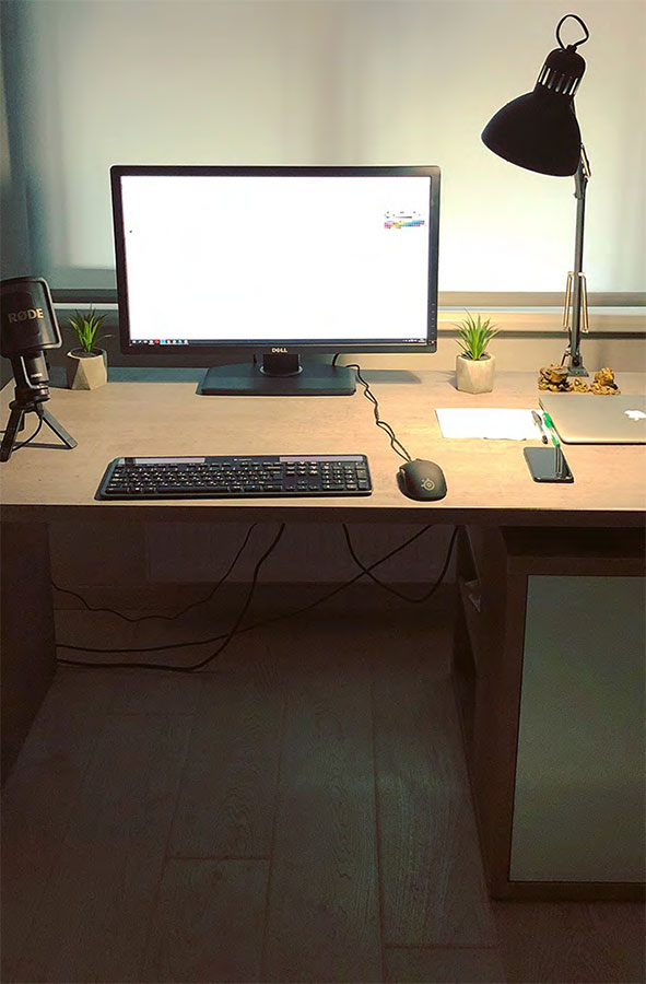 Процессор Intel i7-6700К. Видеокарта GF GTX970 STRIX 4Gb DDR5 ASUS. Клавиатура Logitech K750, заряжается от света, нет проводов, удобные клавиши. Мышь SenSei raw, при многочасовой работе для меня она комфортная, в целом ничего необычного в ней нет. Микрофон RODE NT-USB – записываю на него все видео-обучения и свои курсы. Стоит немало в сравнении с другими микрофонами, но он того стоит. Вот такой вот список железа. Все это можно увидеть на фото в посте.