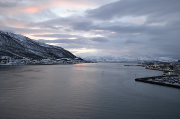 Тромсе находится в северной части Норвегии за полярным кругом, но течение Гольфстрима делает климат очень мягким и довольно теплым. Сюда я и моя жена Юля поехали в маленькой надежде увидеть северное сияние, хотя знали, что в этом регионе небо почти всегда покрыто тучами, и увидеть это чудо планеты получится вряд ли. Зимой солнце здесь, вообще, не поднимается над горизонтом, и только на три-четыре часа становится светло (что-то наподобие раннего рассвета или сумерек). Как ни удивительно, но быстро привыкаешь и даже не реагируешь на то, что дня практически не бывает.