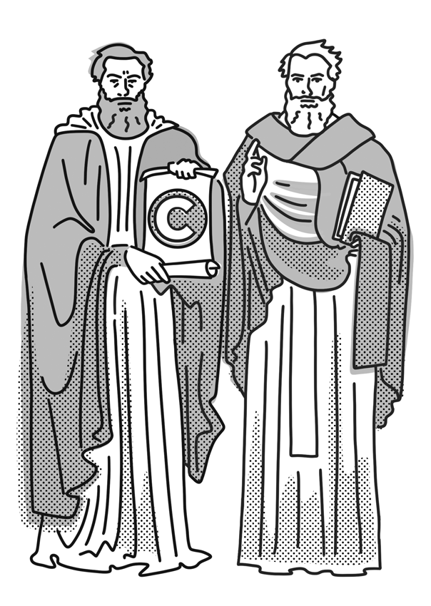 А с другой стороны, если автора кто-то обидит и он решит пойти в суд, в суде ему придется доказать, что он действительно автор[24]. Получается, авторские права вроде как возникают сами по себе и не требуют регистрации, но вот в случае спора нужно убедить суд, что это право у тебя появилось: например, показать свое имя на оригинале или экземпляре произведения.