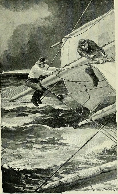 «Когда ветер усиливается, надо убирать паруса. Поднимают по авралу всю команду, абсолютно всех. Надо убрать фор-марсель, а когда берёшься за снасти, парус вздувается, вырывается и грохочет; к тому же он мокрый, становится твёрдым, как доска. А его надо подтянуть к рею, скатать и закрепить так, чтобы не сорвало. Всё это не только возбуждает, но и пугает».