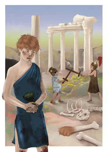 Друзья любили играть на заброшенной деревенской свалке, на которой можно было найти все что угодно: от дырявого гладиаторского шлема и огромных костей динозавров до технического хлама инопланетян. Это было ужасно весело – сражаться всеми этими костями, разыгрывая всем знакомые сценки гладиаторских боев! Ребята с воодушевлением молотили останками динозавров друг друга по головам, надежно защищённым шлемами, пыряли в живот деревянными мечами и картинно падали, задирая ноги! Любили они и разглядывать странные вещицы, некоторые из которых, как им казалось, пикали, прыгали по свалке, переговаривались с кем-то или испускали лучи явно волшебного свойства. Некоторые разрезали пространство, и тогда был виден совершенно иной мир, входить в который друзья не решались, так как боялись, что им потом дома всыплют по первое число. По некоторым лучам можно было ходить, например, между огромным дубом и развалинами храма Аполлона около входа в катакомбы, а по другим лазить наверх, на тот же дуб за желудями. Как же вкусно было их печь потом вечером в костре и обсуждать какие-нибудь важные мальчишечьи темы! Однако после того как одна такая штуковина перерезала лучом кость динозавра и на месте разреза выросла мохнатая нога, все решили быть поосторожнее – ведь никому не хотелось, чтобы у него появилась лишняя часть тела!