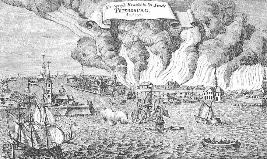 Петербургский пожар 1737 г. Гравюра в немецкой газете кон. 1730-х гг.