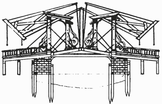 Схема подъемного моста через Зимнедомский канал, построенного по проекту Германа ван Болеса