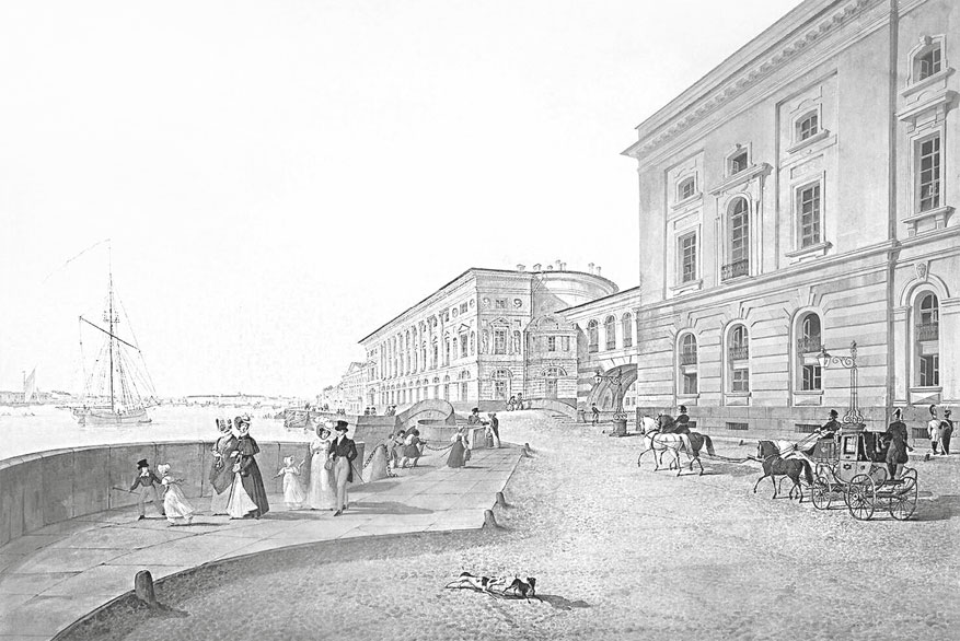 Набережная Зимней канавки быстро стала одним из любимых мест прогулок горожан и особенно фрейлин Двора.