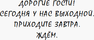 В задумчивости девчонки стали тихими. Они молча смотрели на погром, что великан сотворил, жаба такая, чуть не разломал их славный кофик. Молча собирали осколки большой кружки, перебитые вазочки, блюдечки, ставили столик на место – ему ещё повезло, ничего ему не сделалось. Но тут они увидели кресла, а у кресел вид был такой пострадавший, такой несчастный и поломанный, что девчонки сами стали несчастными и поломанными. Они руки опустили, вздохнули тяжко и побрели за двери кофика – ставить на место себя самих. Если вы пробовали ставить себя на место, то знаете, что это дело непростое и небыстрое. Эли и Лю́си об этом догадывались и на всякий случай приладили на стеклянной двери кофика картонный листок: