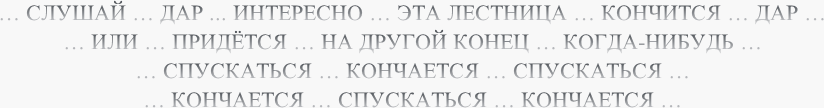 Лю́си опять захотела фыркнуть, но скоро сама убедилась, что Эли права, снова у них под руками и ногами была лестница и ступеньки, ничего, кроме лестницы.