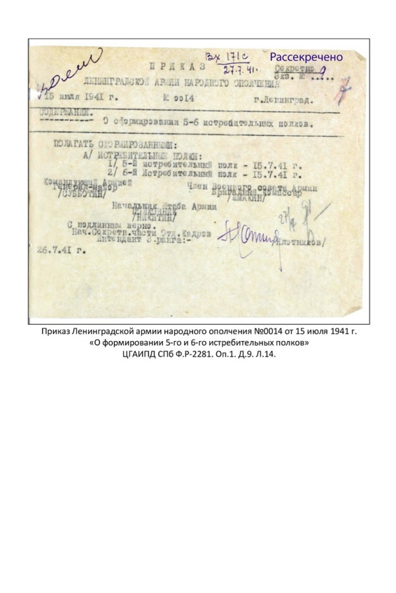 Приказом ЛАНО от 16 июля 1941 г. было подтверждено формирование 13 июля четырёх истребительных полков: