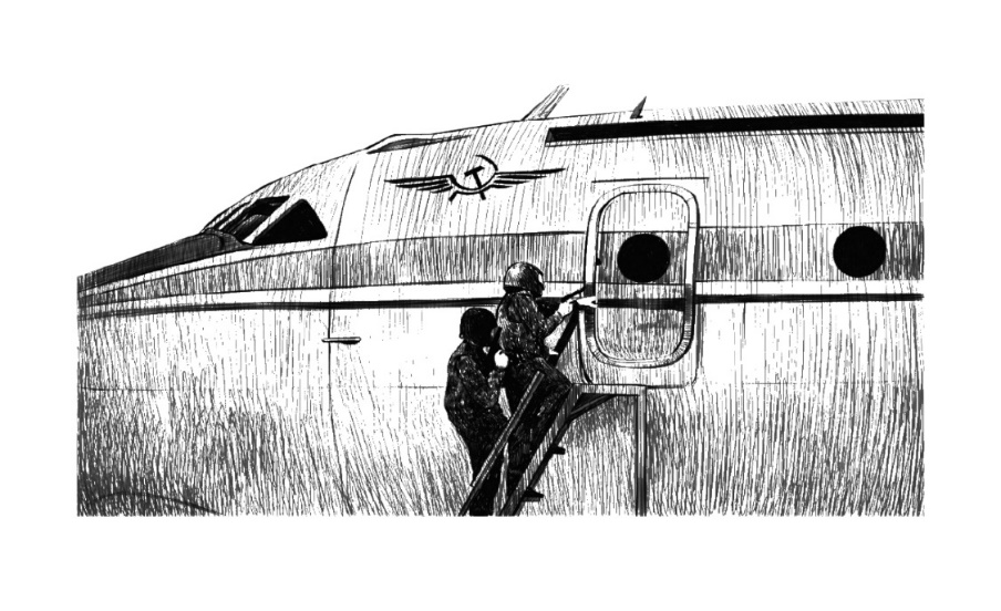 Самолет. Тусклый свет на лицах.
