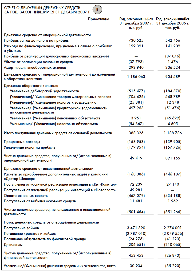 Более подробно об особенностях отчета о движении денежных средств мы будем говорить в отдельной главе.