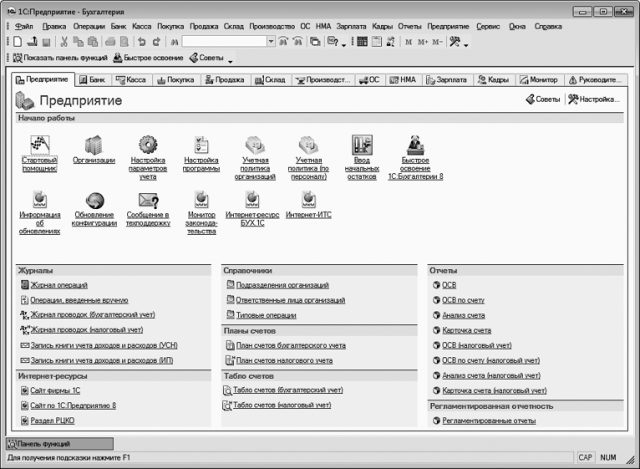Рис. 1.10. Главное окно «1С: Бухгалтерия 8»
