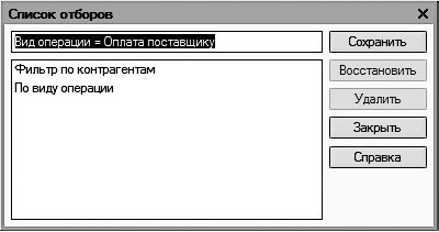 Текущую настройку фильтра можно сохранить, воспользовавшись кнопкой Отборы. При нажатии данной кнопки открывается окно, изображенное на рис. 1.16.