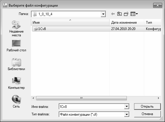 Учтите, что данная команда становится доступной только при открытом окне Конфигурация (см. рис. 1.7). При ее активизации на экране отображается окно Выберите файл конфигурации, изображенное на рис. 1.9.