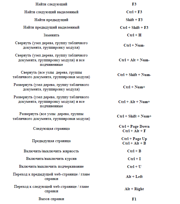«Горячие клавиши» для работы в интерфейсах списка и с иерархическими списками