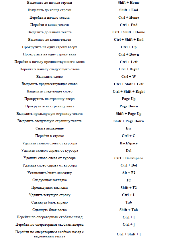 «Горячие клавиши», предназначенные для работы с текстовыми документами