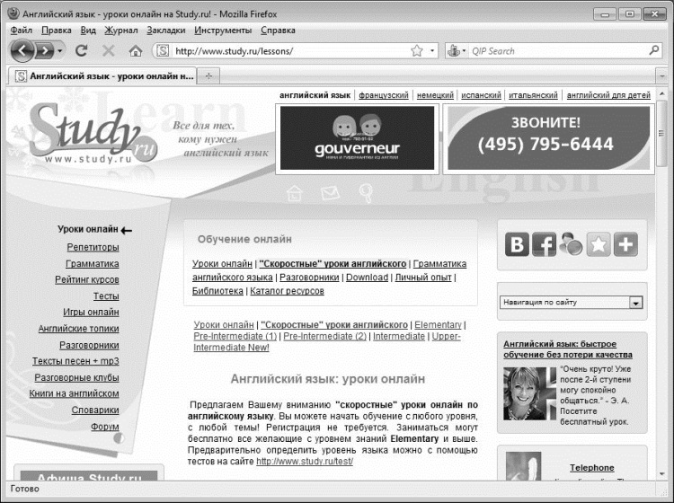 Один из таких ресурсов находится по адресу http://www.study.ru (рис. 1.1). Здесь вы можете изучить английский, немецкий, французский, испанский и итальянский языки.
