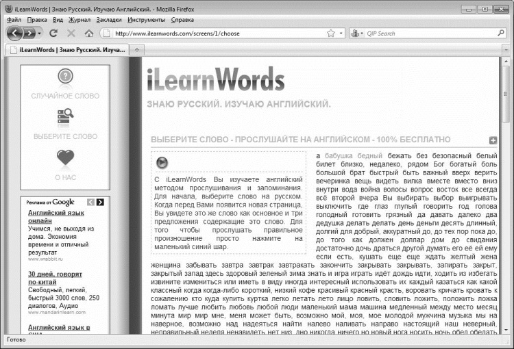 Рис. 1.3. Обучающий ресурс www.ilearnwords.com